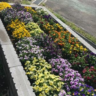 東金工場の事務所前には大きな花壇があり、四季に合わせてお花を植えています